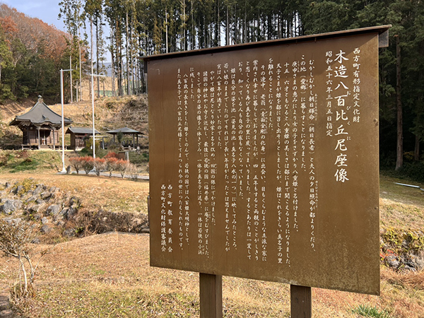 18 歳の美しい姿のまま不老不死となり、800 年も生きたという伝説の美女・八重姫。 尼となって各地の困っている人を助けながら旅を行ったが、不老不死であることに疲れ、若狭国小浜(現在の福井県小浜市)の海に身を投げたと伝わる。小浜では八百姫大明神としてまつられ、 西方では八百比丘尼様としてまつられています。お堂がある地は「八百比丘尼公園」として整備されています。