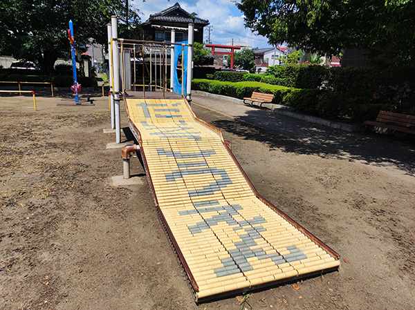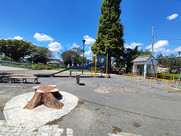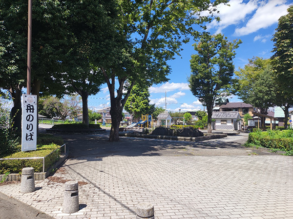 ブランコとローラーすべり台のある小さな公園ですが、背の高い木と座れる場所も多いので、散歩をしている近所の方の憩いの場になっています。また、栃木市がロケ地となった女優吉永小百合さん主演の映画「いのちの停車場」のバス停車場をイメージしたモニュメントもあるので、ロケ地巡りとしても楽しめる公園です。