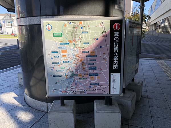 蔵の街の3つ折りパンフレットは英語だけでなく、中国語・韓国語・フランス語・スペイン語・タイ語、計6か国語のパンフレットが設置されていました。