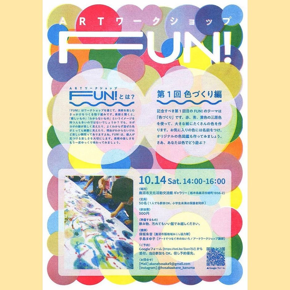 | お問い合わせ | ARTワークショップ FUN! 問合せ先:akanehosaka9@gmail.com |