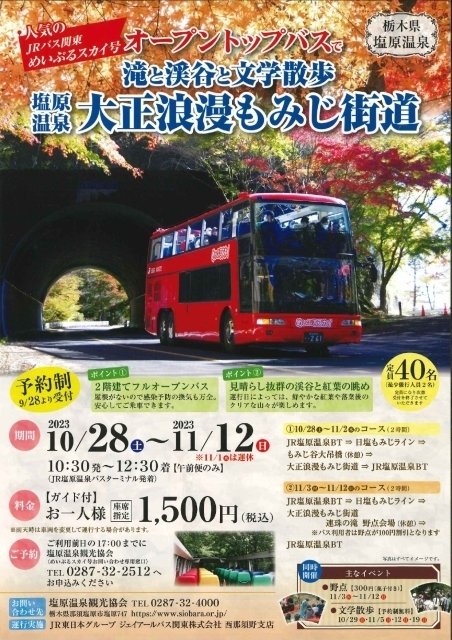 【要電話予約】2階建てオープンバスで塩原温泉渓谷巡り