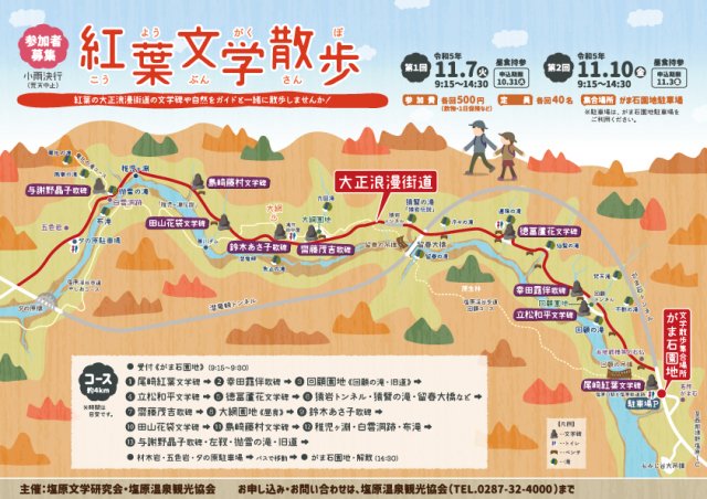 また、10月19日~11月30日の期間、塩原温泉文学碑スタンプラリーを開催!もれなく景品がもらえる。