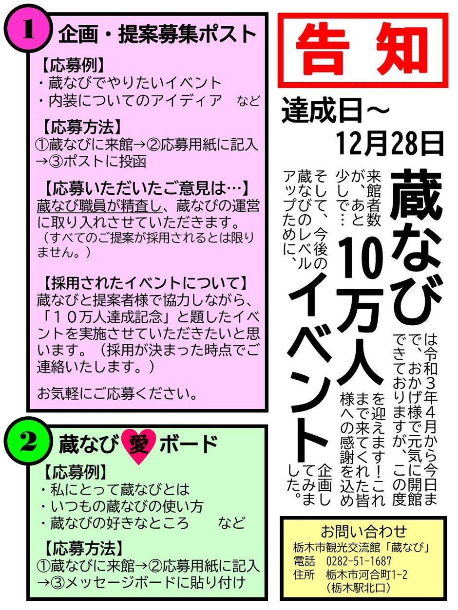 蔵なび10万人イベント(蔵なび来館者数10万人達成イベント)