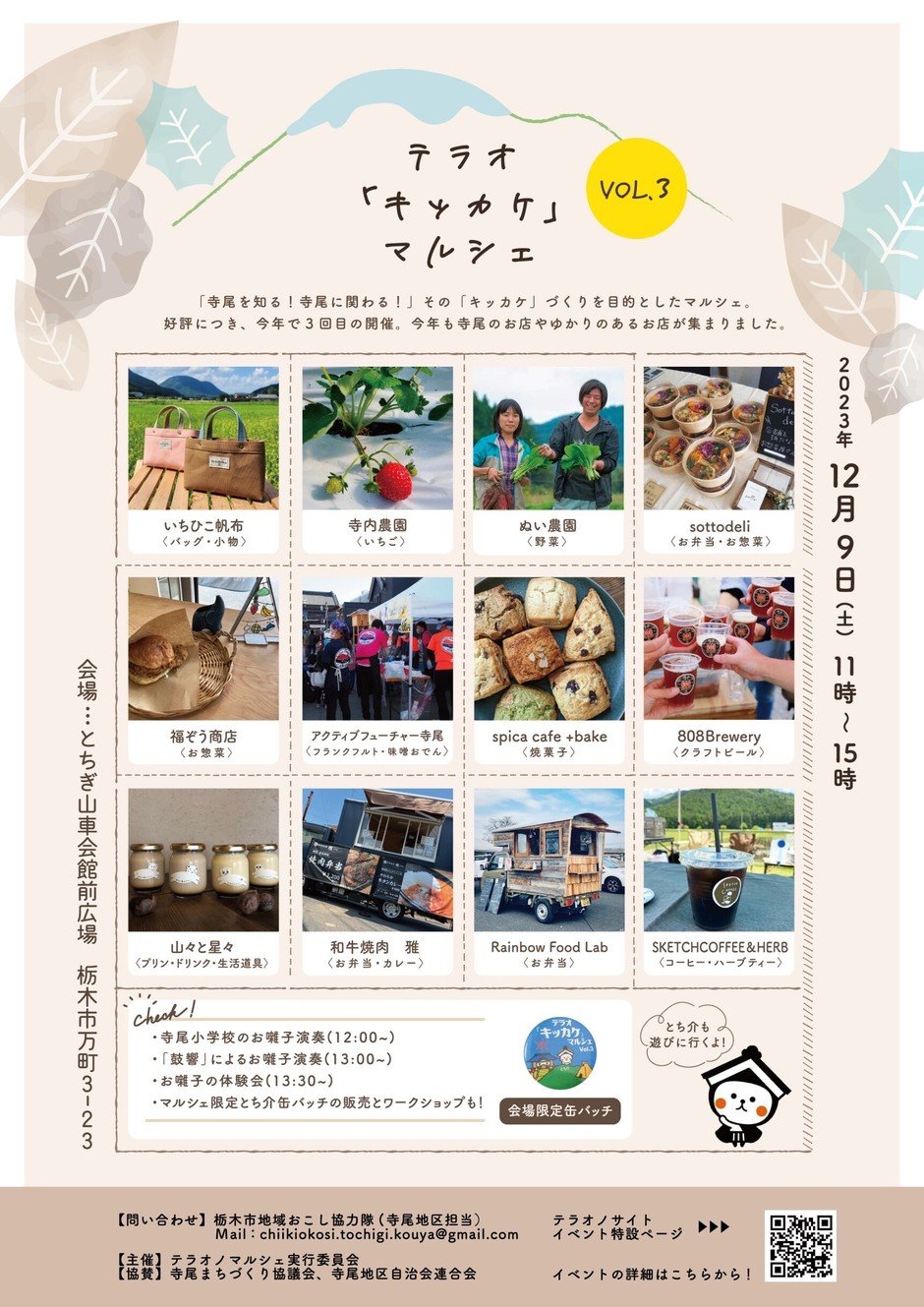 今回も盛り沢山のマルシェとなっていますので、ぜひ山車会館に足を運んでくださいね!