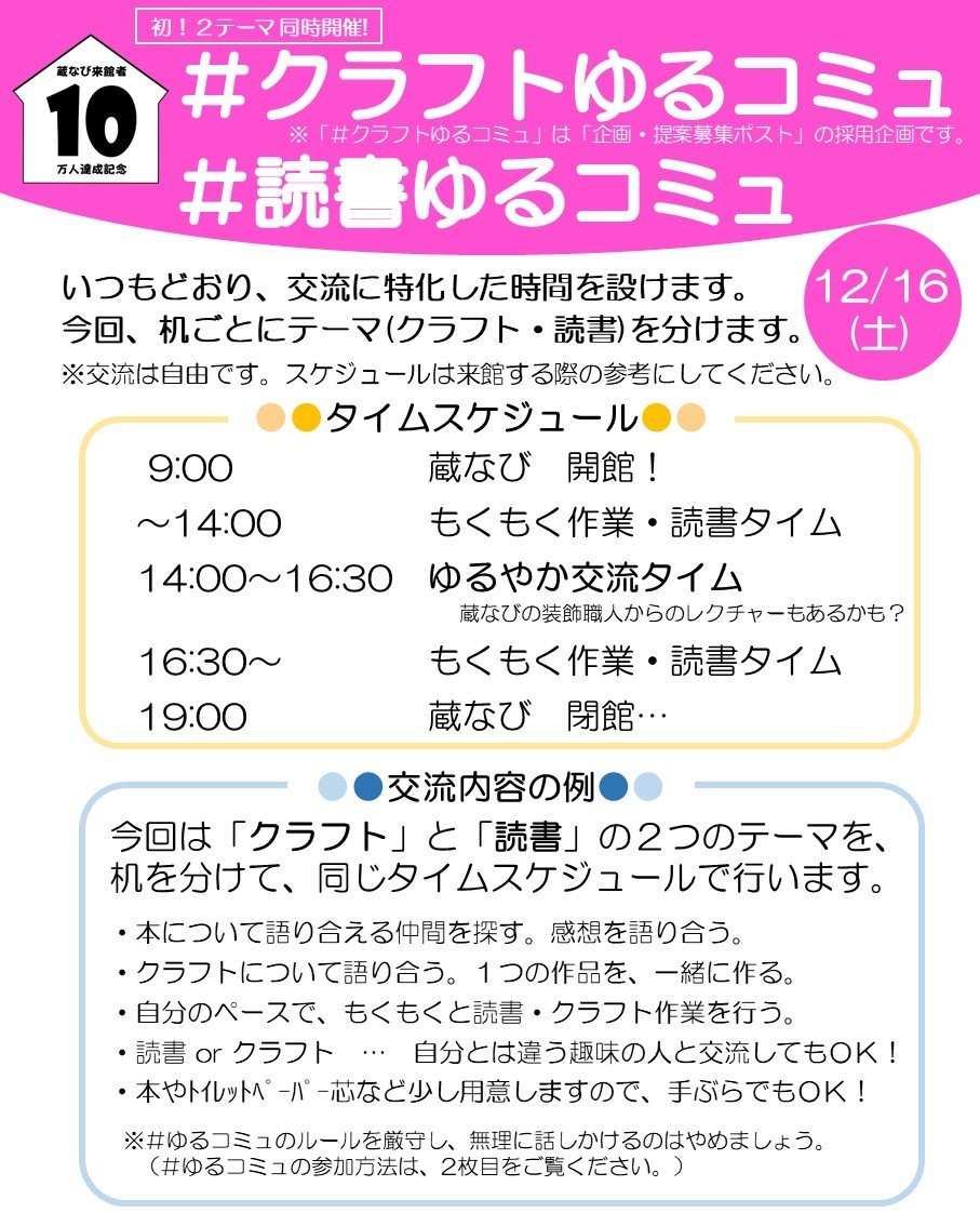 今回は、「蔵なび10万人イベント」でご提案のあった【#クラフトゆるコミュ】を開催します!