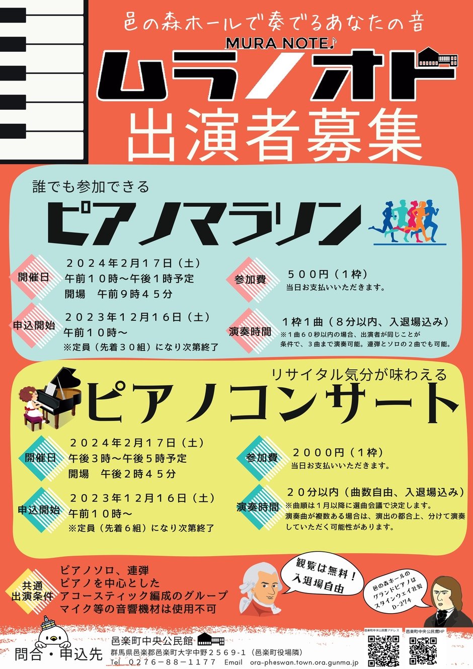| お問い合わせ | 主催・問合せ先:邑楽町中央公民館 TEL:0276-88-1177 |