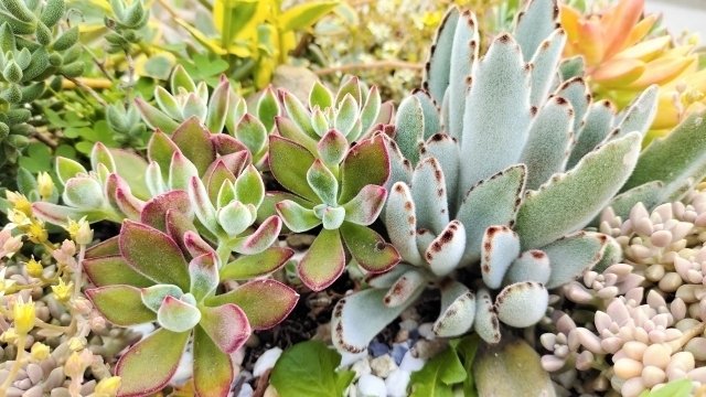 アーティスティックなサボテン、多肉植物を200種以上集めた。三毳山の土を使ったみかも焼きと栃木県を代表する益子焼の鉢との融合も楽しもう。