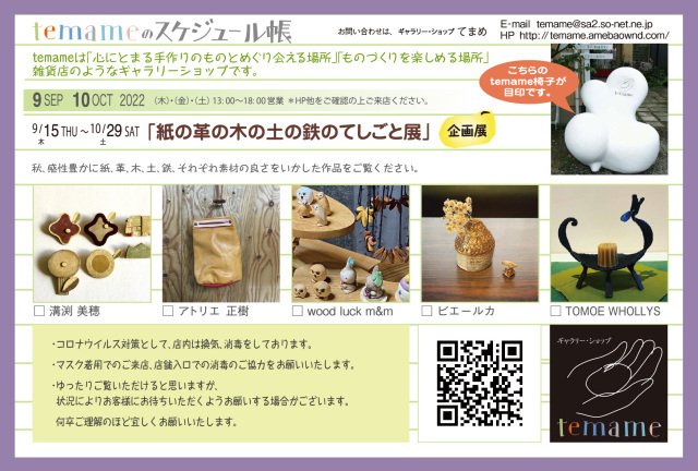 秋、感性豊かに紙、革、木、土、鉄、それぞれ素材の良さをいかした作品を観覧しよう。