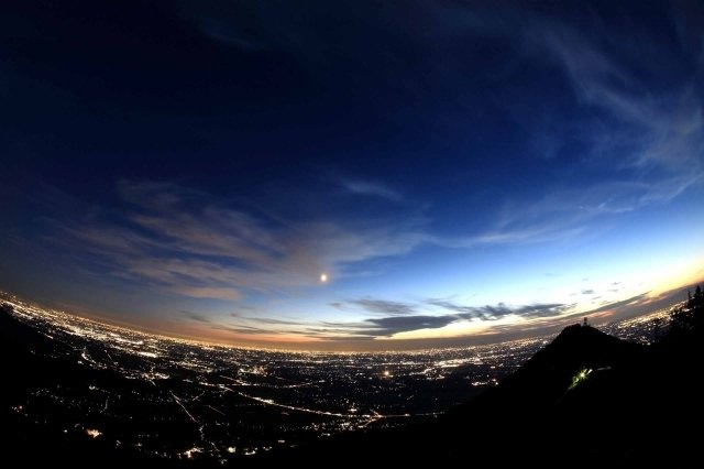 筑波山から見る関東平野の雄大な夕刻と夜景