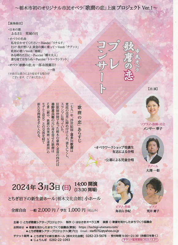 ~栃木市初のオリジナル市民オペラ「歌麿の恋」上演プロジェクトVer.1~