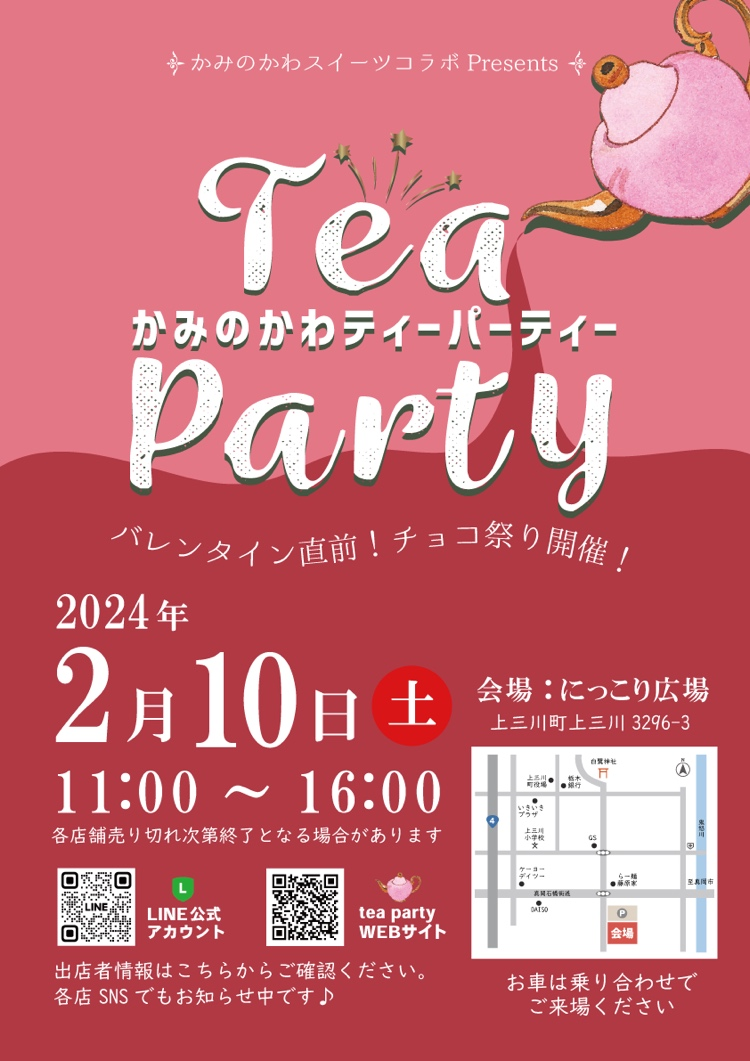 | 関連サイト | https://sweetscollabo.hp.peraichi.com/kaminokawateaparty |