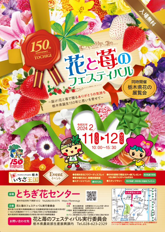 | お問い合わせ | 花と苺のフェスティバル実行委員会(栃木県農政部生産振興課内) TEL:028-623-2329 |