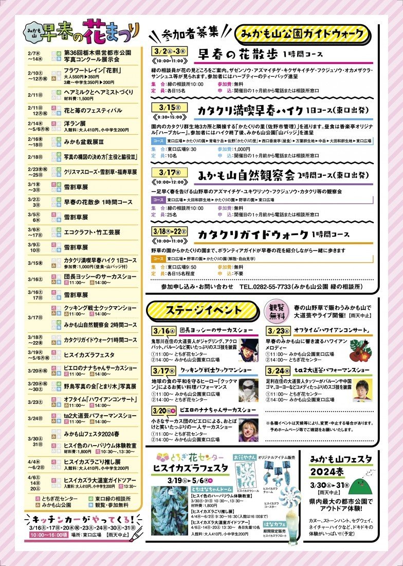 | 関連サイト | https://www.park-tochigi.com/mikamo/event/%e6%97%a9%e6%98%a5%e3%81%ae%e8%8a%b1%e3%81%be%e3%81%a4%e3%82%8a2024 |