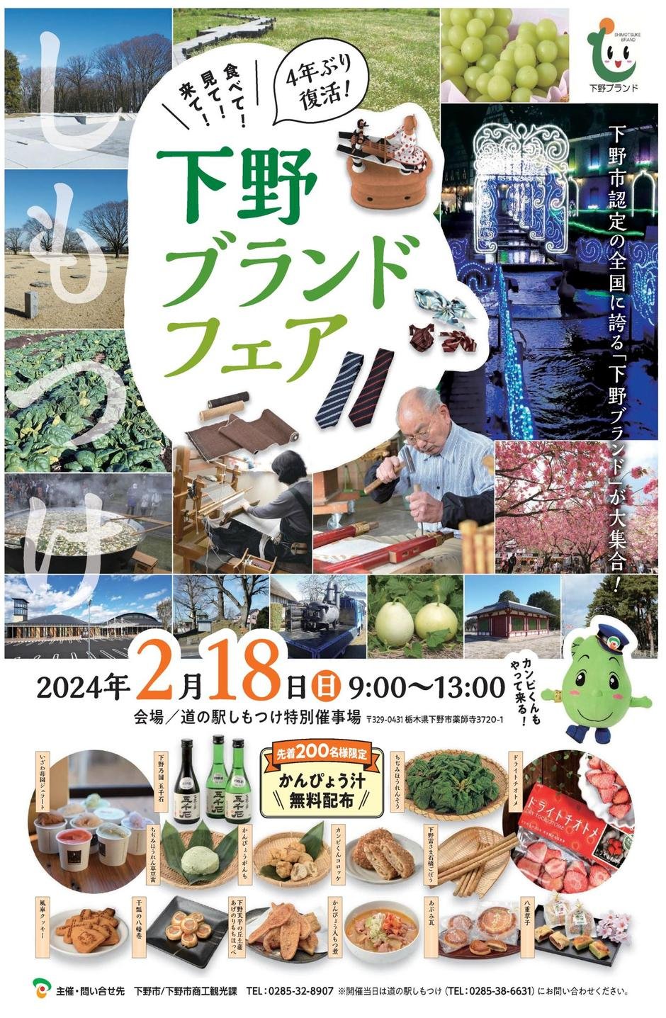 | お問い合わせ | 主催・問合せ先:下野市/下野市商工観光課 TEL:0285-32-8907 ※開催当日は【道の駅しもつけ(TEL:0285-38-6631)】にお問い合わせください。 |