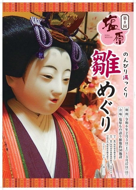 塩原温泉地区内の宿泊施設、飲食店等の参画施設内で雛めぐりを楽しもう。