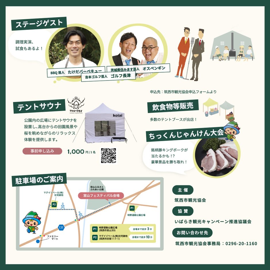 さらにステージイベントでは吉本芸人の皆さんのステージや音楽ライブ、さらに筑西市の特産品が当たるちっくんとのじゃんけん大会など盛りだくさん!