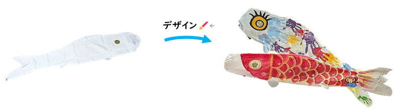 約1mの無地こいのぼりに絵の具やペンで色付けし、オリジナルこいのぼりを製作します。