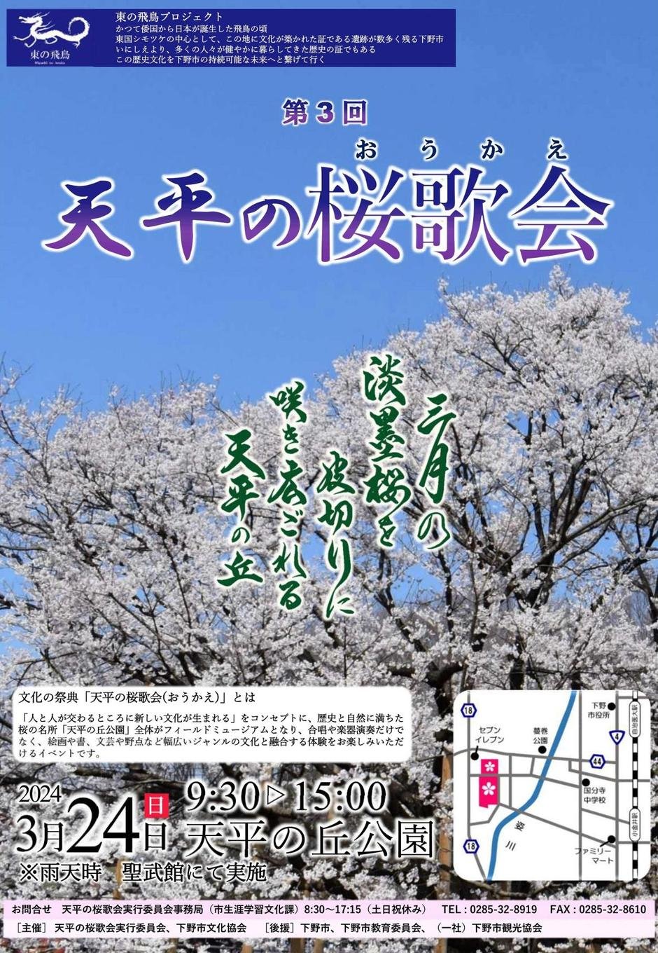 | お問い合わせ | 主催:天平の桜歌会実行委員会・下野市文化協会 問合せ先:天平の桜歌会実行委員会事務局(下野市生涯学習文化課) TEL:0285-32-8919(平日8:30~17:15) |