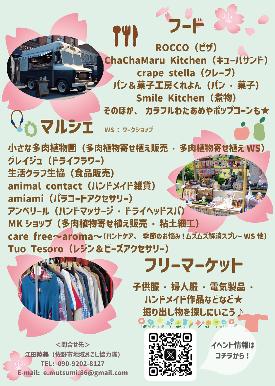 | お問い合わせ | 問合せ:佐野市地域おこし協力隊 江田睦美 E-mail:e.mutsumi.86@gmail.com |