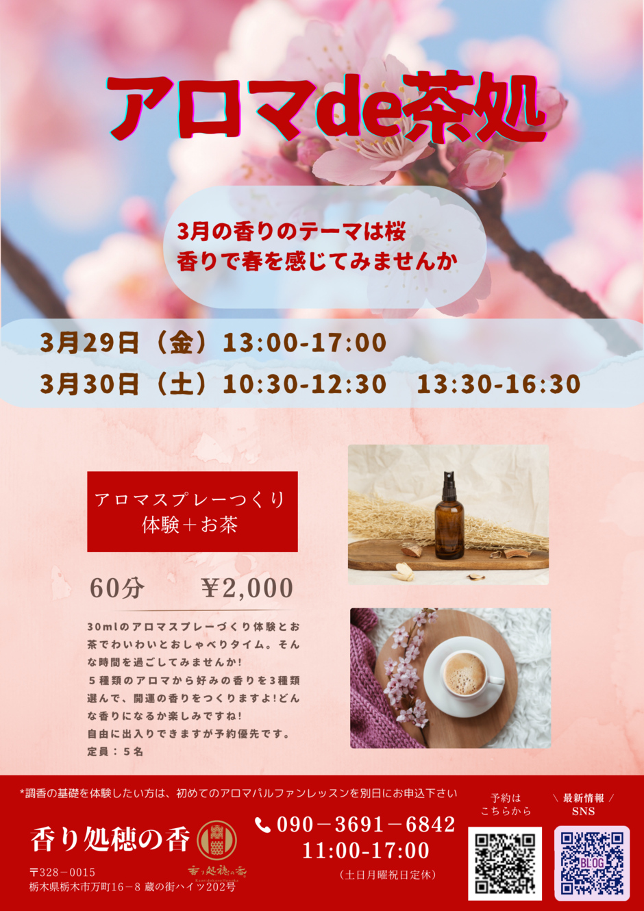 アロマde茶処~桜をイメージした香りのアロマスプレーづくり体験~