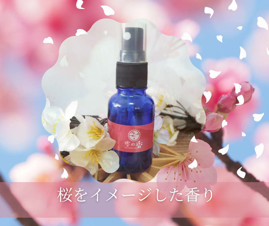 3月の香りのテーマは、桜です。香りで春を感じてみませんか。芽吹きの春、寒い冬から脱しようとしているのは、植物だけではありません。寒くて縮んだ身体を、温かな春に向けて前向きになる香りを創ってみませんか。寝る前に、アロマスプレーをお部屋に一吹きすると、春の桜を感じながら、眠りにつくことでしょう。