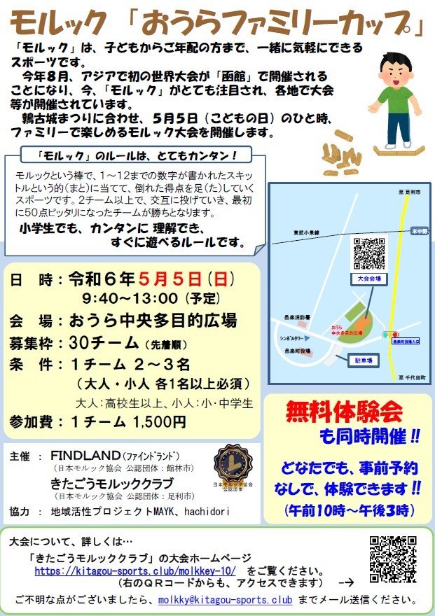 また、モルックの更なる普及のため、事前予約不要の「無料体験会」も同時開催いたします。