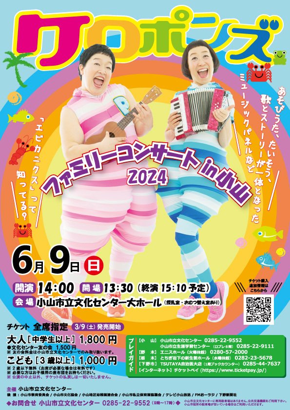 『ケロポンズ ファミリーコンサートin小山2024』開催のお知らせ