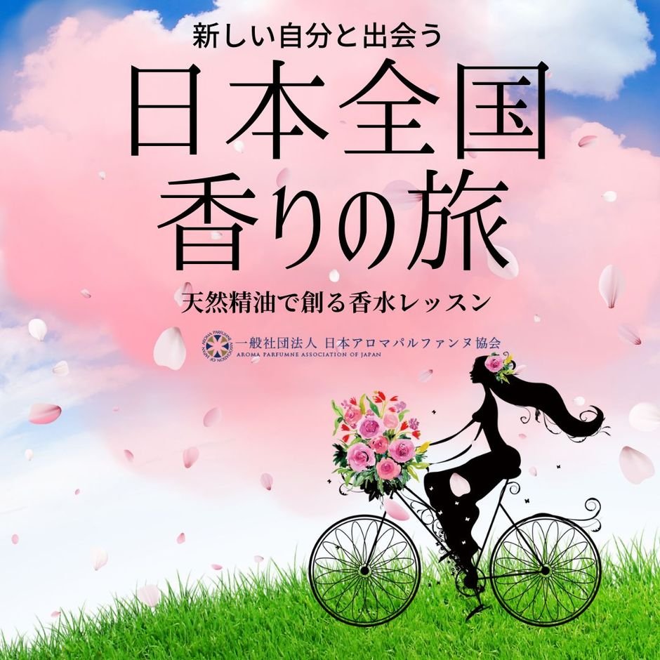一般社団法人日本アロマパルファンヌ協会主催、日本全国香りの旅キャンペーン、天然精油で創るアロマパルファン香水レッスンのお知らせです。