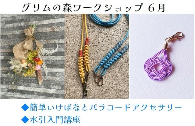 | 参加費 | 簡単いけばなとパラコードアクセサリー1,800円、水引入門講座1,700円 |