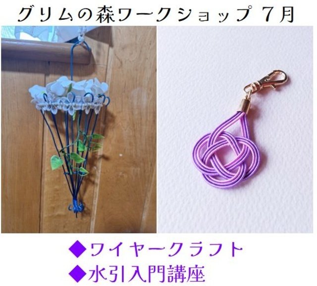 日本の伝統素材・水引を使ったキーホルダーを作る「水引入門講座」と、ワイヤーで傘のオブジェを作る「ワイヤークラフト」の2つの講座が行われる。