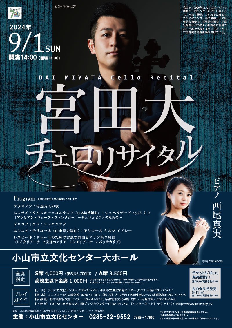 | 参加費 | 全席指定: S席4,000円(小山市立文化センター友の会3,700円)/ A席3,500円 /高校生以下全席1,000円/ ※未就学児同伴入場不可 |