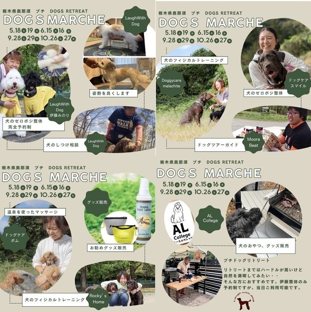 プチDogs Retreat 最初から犬のリトリートはできるかどうか不安。そんな人の為に、自然の中での体験会やグッズ販売を行う犬のマルシェが開催。