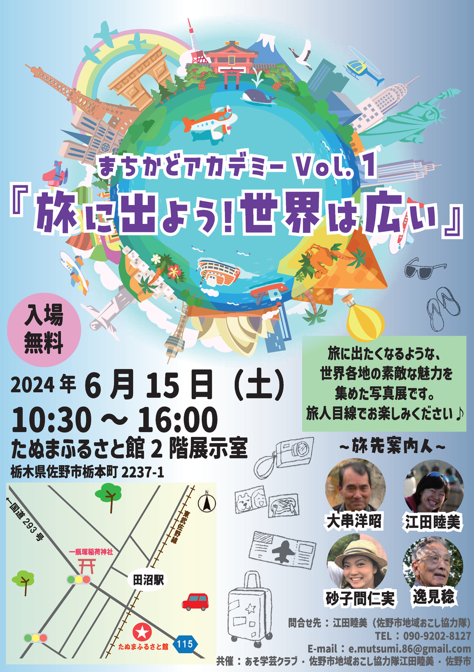 | お問い合わせ | 共催:佐野市地域おこし協力隊江田睦美、あそ学芸クラブ、佐野市 問い合わせ先:江田睦美(佐野市地域おこし協力隊) e.mutsumi.86@gmail.com |