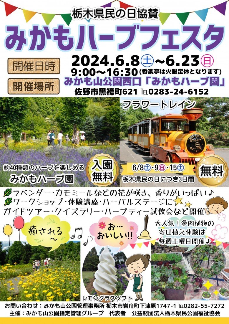 園内はコナラやクヌギといった広葉樹林に囲まれ、豊かな自然を有しております。三毳山は様々な山野草が自生し、花の百名山にも選定されています。春はサクラやヤマツツジで彩られ、夏にはすがすがしい深緑、秋には鮮やかな紅葉と、四季折々に表情を変化させます。遊びごころ満載の施設もたくさんあり、「新しい発見」が皆さんを待っていることでしょう。