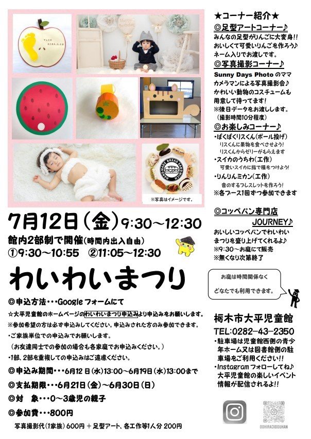 | お問い合わせ | 栃木市大平児童館 TEL:0282-43-2350 |