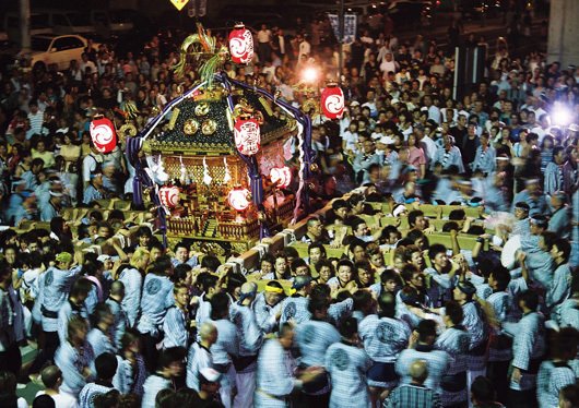 玉のような汗を飛ばす男衆の大神輿。 若き女性の肩にゆられる女子神輿。
