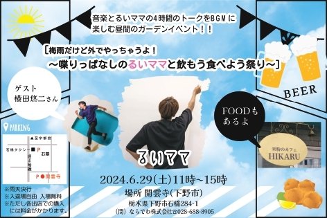 音楽とるいママの4時間のトークをBGMに楽しむ昼間のガーデンイベント!!