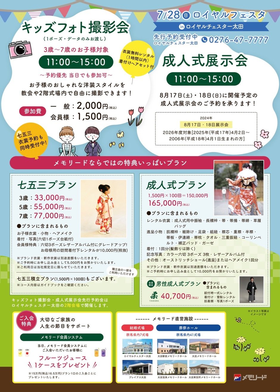 ・ウエディングドレス、七五三、振袖 衣装展示・成人式展示会 先行予約会・キッズフォト撮影会