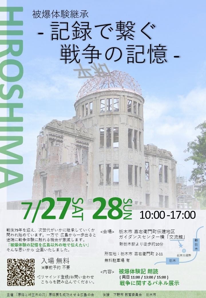 | お問い合わせ | 主催:「原爆と峠三吉の詩」原爆展を成功させる広島の会 後援:栃木市、下野市教育委員会 |