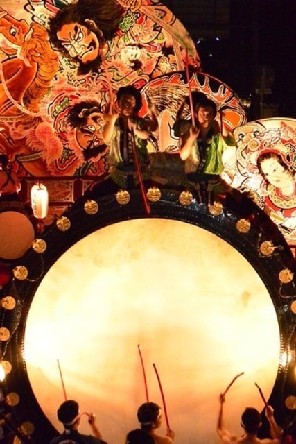 「ヤーヤドー」の掛け声とともに約10台のねぷたが会場を練り歩き、高さ7メートルにもおよぶ扇ねぷたとねぷた太鼓の隊列は勇壮そのもの。太田の夏の夜に浮かび上がる色鮮やかな武者絵の幻想的な美しさに心を揺さぶられること間違いなし。まつりのクライマックスでのねぷた太鼓とまつり囃子の大合奏は特に注目!