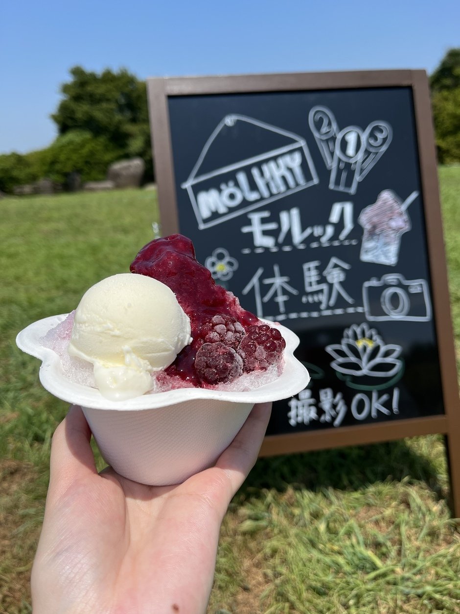 モルックのミニゲームに勝利した方には、かき氷のトッピング無料券をプレゼント!