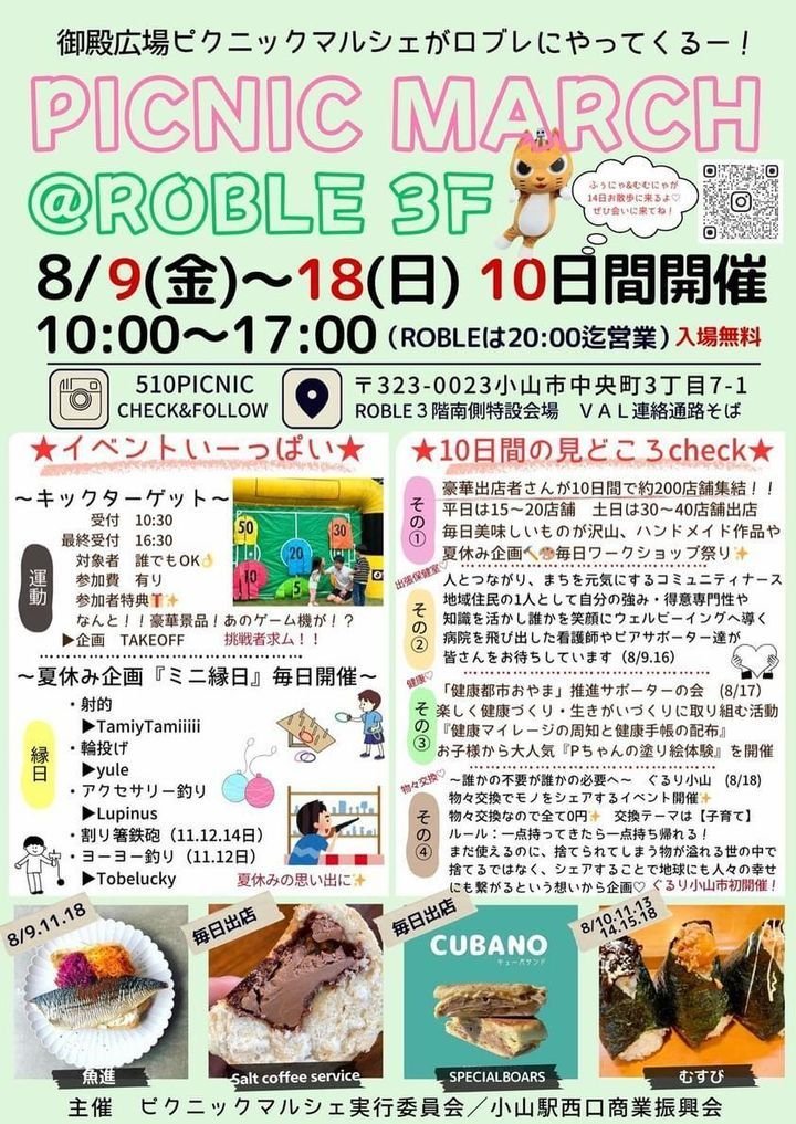 8/18(日)の御殿広場ピクニックマルシェにて、ぐるり小山を初開催します✨