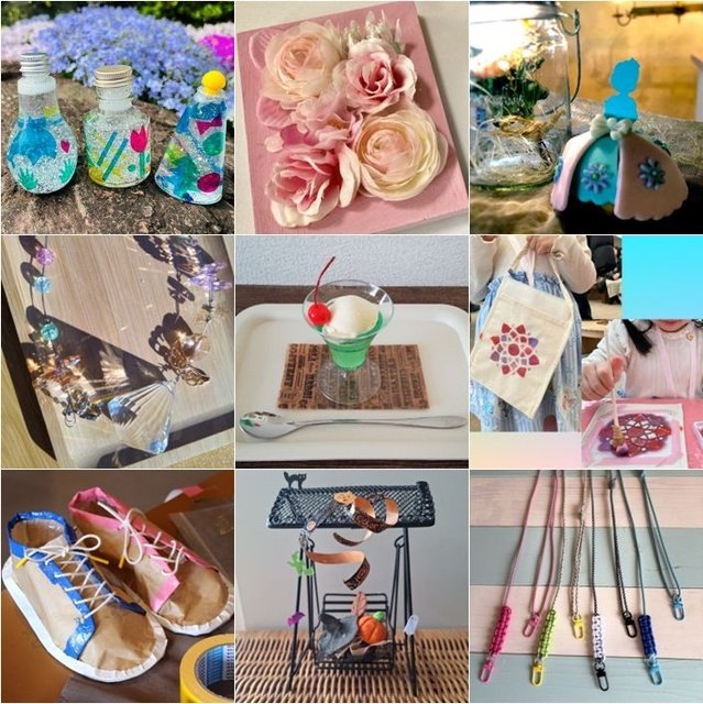 夏休みの子どもや親子を対象に開催される、体験教室(ワークショップ)。パラコードキーホルダーやサンキャッチャーなどのクラフト工作、生け花アレンジやフラワーリースなどの植物を使った講座、チョークアートや貝殻アートなどの美術系の講座など、さまざまな講座が開設される。夏休みの思い出づくりや宿題として、いろいろ参加してみよう!