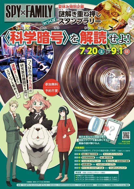 TVアニメイベント『SPY×FAMILY in つくば どきどきだいさくせんっ!』との連動企画で、謎解き重ね押しスタンプラリーを開催!市内にある研究教育機関10施設から希望の5施設を選んで見学&謎解きを楽しもう!詳細はHPへ。 ※遠方からの人はサイエンスツアーバスを利用して周遊も可能