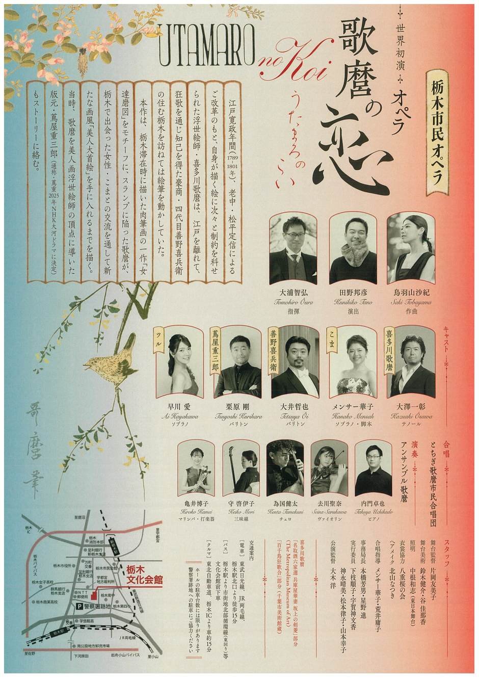市民合唱とプロの音楽家が一体となって贈る栃木市初のオリジナル市民オペラ恋をするように美人画に向き合う歌麿の姿が音楽の力で鮮やかに表現される