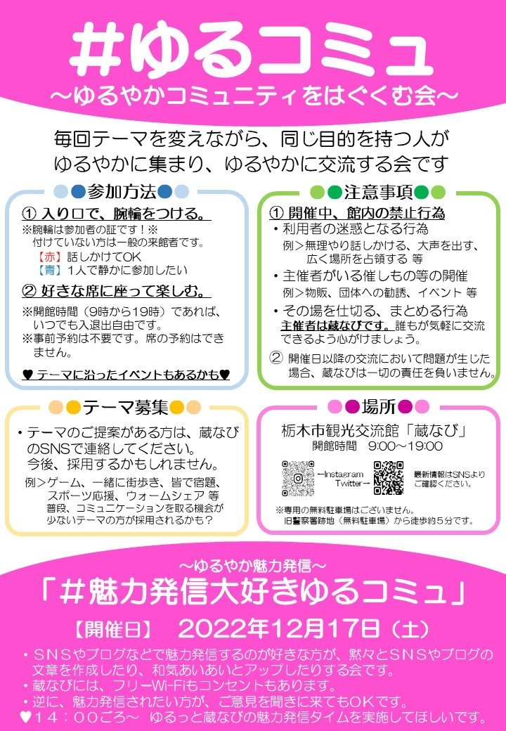 栃木市観光交流館「蔵なび」は、観光案内、特産品の展示、観光情報等の発信及び多目的交流を行うとともに、本市の魅力を広く発信する等の総合的シティプロモーション機能を持った新たな観光拠点施設として、魅力・活力・賑わいの創出を目指して設置されました。