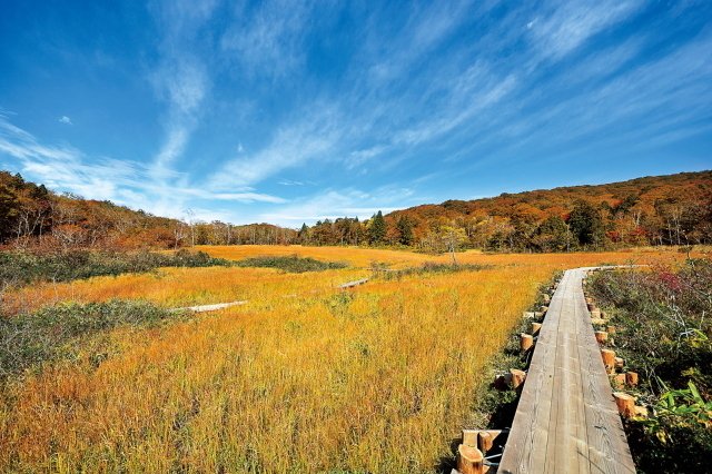 四季折々…玉原高原は武尊山の山麓に広がる関東有数のブナ林に囲まれ、植生の珍しさから「小尾瀬(こおぜ)」と呼ばれており、四季を彩る草花を見ることが出来る。春夏秋冬で違った楽しみ方ができるのが、玉原の魅力だ。秋は湿原の草紅葉が色づき美しい風景が広がる。首都圏から車で約2時間でアクセス可能で手頃な散策を楽しめる。玉原高原で、秋景色を楽しもう。