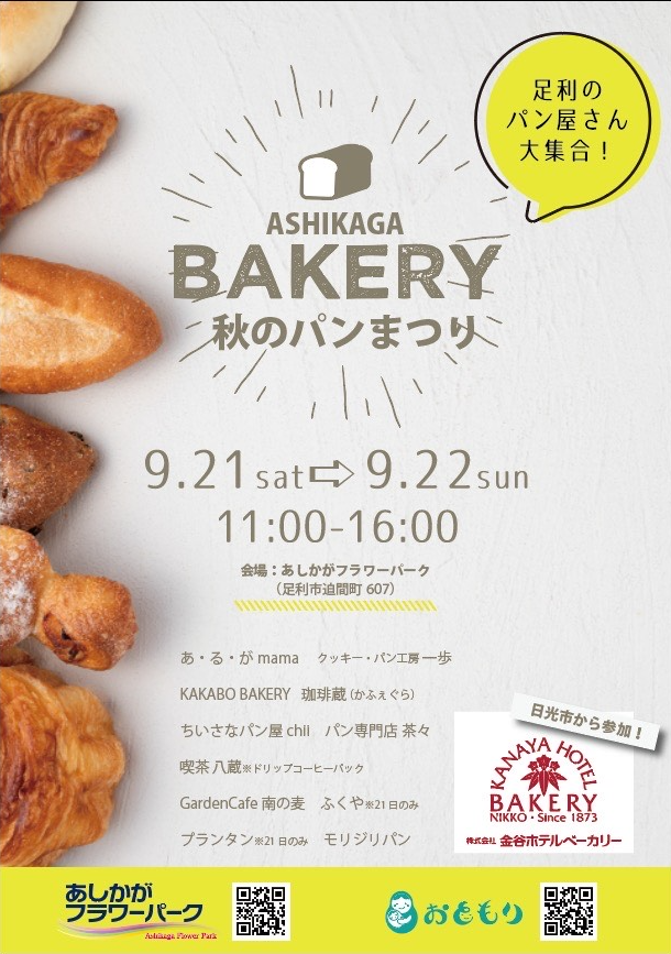 9/21(土)・22(日)の2日間、足利のおいし~いパン屋さんがフラワーパークに大集合いたします!