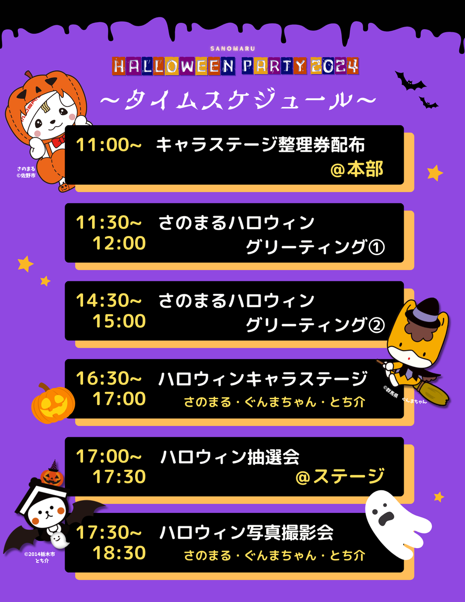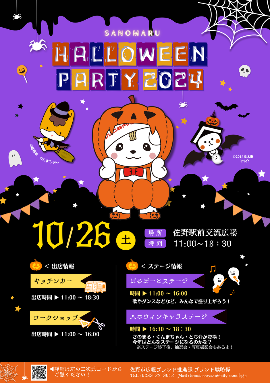 「さのまる」「ぐんまちゃん」「とち介」と一緒に、ハロウィンパーティーを楽しもう!ワークショップやキッチンカーも出店あり。
