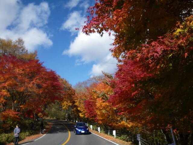 鬼怒川温泉と塩原温泉を結ぶ約28kmの道路。標高差があるため長い間紅葉を楽しむことができる。道路左右に赤や黄色、橙色の美しい紅葉風景が広がり、秋を満喫しながらのドライブが楽しめる。